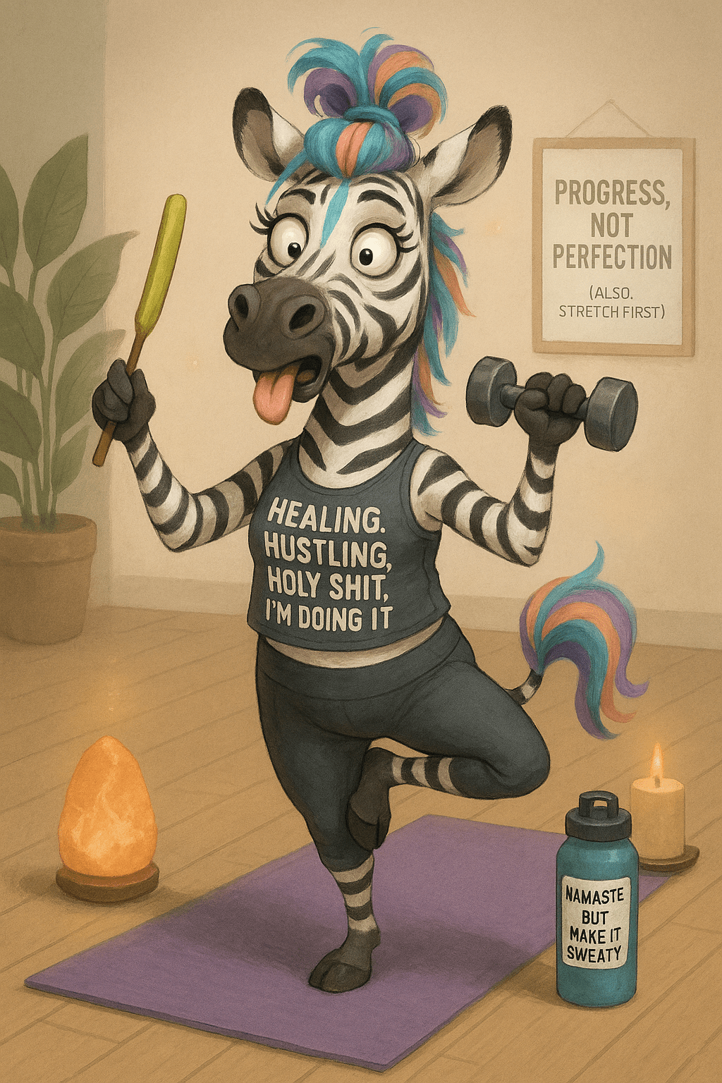 Let me back up. I started back with my personal trainer this week. I know, cue the Rocky music and the slow-motion montage of me trying to remember how to lift weights without tearing something important (like my spirit). The thing is, I’ve been doing yoga religiously these past six weeks while healing, and I love it. I’ve got my warrior pose down. My down dog is no longer an accidental face plant, and my zebra booty is finding its way back to center. I felt like I needed to add strength training back into the mix-because apparently, carrying emotional baggage doesn’t count as resistance work.